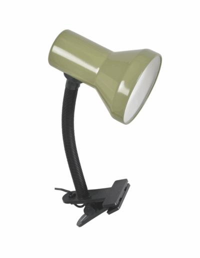 Spot à pince en métal avec peinture brillante. Équipé d’une tige flexible et d’une pince en plastique.