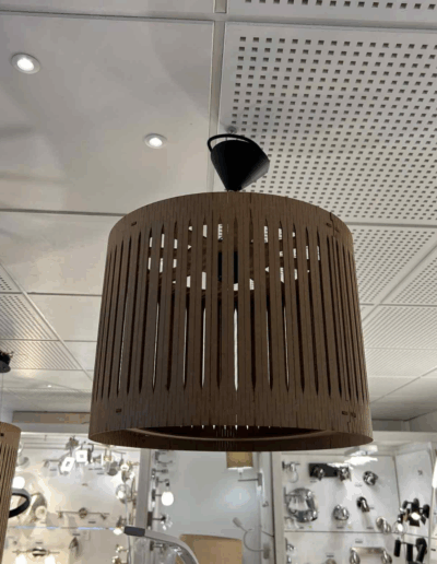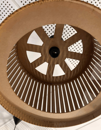 Suspension cylindrique ajourée en carton.